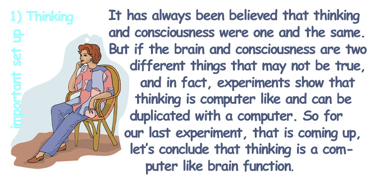 But what about choice? True choice is free will. If choice comes from the brain we would have no free will, and we are nothing but a computer reacting to the world. But if we have a true understanding of our choices then we have free will, and consciousness must be separate from the brain; maybe our soul. To find out lets look at an The Tony Marcel Experiment next.